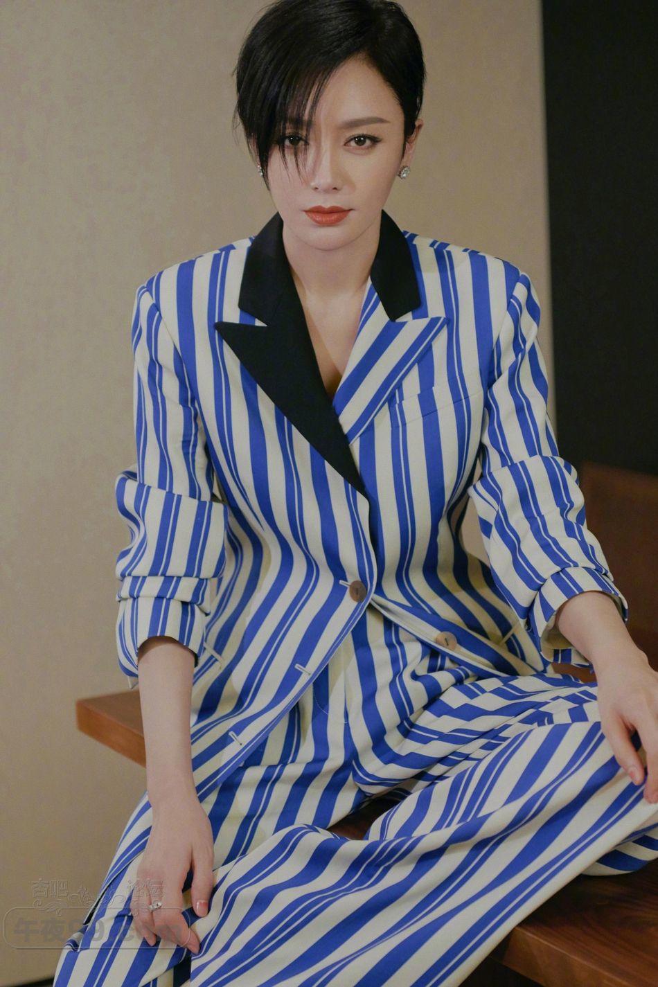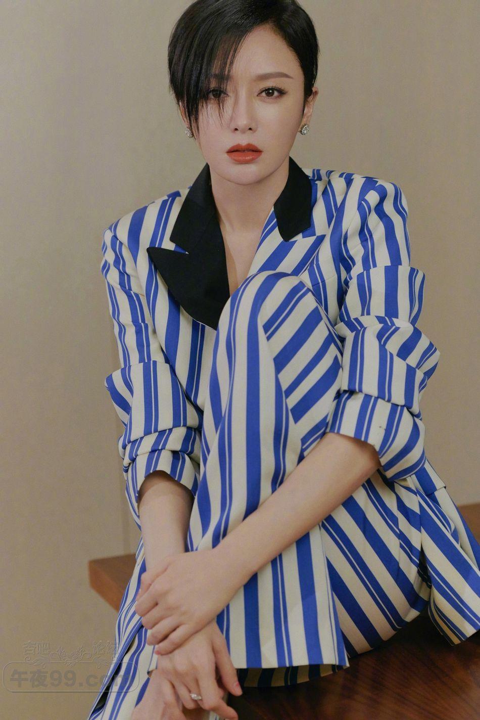 秦岚短发+病号西装造型拍写真_温柔“皇后”变帅气御姐【16P】